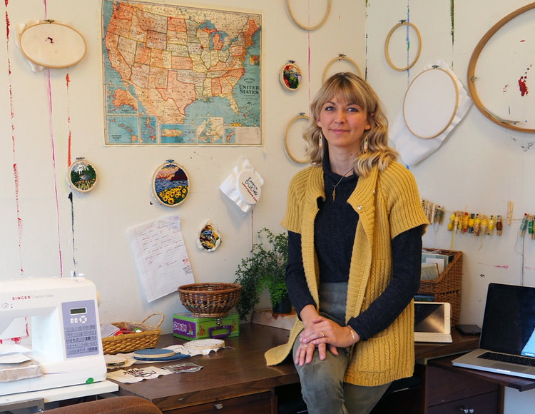 Desideravo trovare un modo per dire alle persone di smettere di fare commenti sul mio corpo o guardarmi in modo intenzionalmente non appropriato. Ho preso il mio paio preferito di pantaloni, l’ho ricamato direttamente sulla tasca posteriore con un messaggio carico di odio e l’ho indossato il giorno dopo. Ho ricevuto un riscontro fantastico e richieste da parte delle persone di confezionargliene uno loro. Volevo combinare trend di moda attuale, materiali tradizionalmente femminili e atteggiamenti sessuali inopportuni. Ho deciso di usare i dati statistici di ricerca sull’argomento e creare toppe da inviare alle persone interessate. Nel novembre 2018 ero l’unica a indossare una toppa Talking Tushies e attraverso di loro avevo intenzione di diffondere consapevolezza, senso di legittimizzazione e ostentazione di arte itinerante nelle vite degli altri.