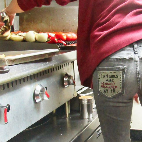 I desired to come up with a way to tell people to stop making comments about my body or looking at me intentionally inappropriate. I took my favorite pair of pants and embroidered directly into the backpocket a hateful message and wore them the next day. I received amazing feedback and requests for people to do their own. I wanted to utilize current fashion trends, traditionally-feminine materials, and to confront inappropriate sexual behaviors. I decided to use the research data and create patches to be able to send to interested individuals. In November 2018, I was the only person wearing a Talking Tushies patch, and wanted to spread the awareness, empowerment and traveling art display into other’s lives.