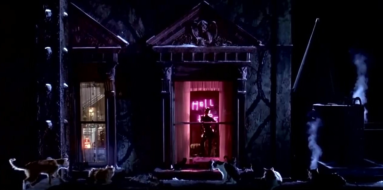 Pfeiffer sottolinea che la tutina assieme al corsetto era costrittiva. La maschera necessitava di continui fitting per evitare che le facesse male nel parlare. La gomma del costume era dipinta in silicone che veniva bagnato di shot in shot per mantenere l’effetto lucido. Doveva essere ricoperta di borotalco e aiutata da persone per infilarsi dentro il costume. Per non parlare del bustier, che era fatto apposta da Phil Reynolds, un maestro della corsetteria da ballo, particolarmente stretto e limitava il respiro. Una tortura essere sexy in un mondo di uomini, eh? Catwoman lo sa bene, per questo la sua catsuit, come è chiamata in inglese, ha cuciture a vista, per rendere palese il suo dissenso verso una cultura patriarcale che la vuole lucida, perfetta e disponibile. Pronta all’uso come un oggetto. La Catwoman di Burton è unica nel suo genere perché rispetto a quella deludente dei fumetti DC non è sessualizzata. Rinasce abbandonando la femminilità stereotipata della sua vita precedente ed abbraccia la sua nuova sessualità che le piace, perché ancora inesplorata e piena di novità. È sexy solo per il proprio piacere. Ignora sistematicamente le avances degli uomini del film, stuzzica Batman rifiutando però i suoi tentativi di salvarla, mette al primo posto i suoi desideri. È lei la vera protagonista del film, gli altri sono personaggi marginali. Tim Burton è stato un genio, ha dato un senso ad una supereroina bistrattata sin dagli anni Quaranta.