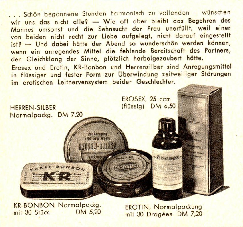 In Germania nel frattempo l’ex pilota della Luftwaffe Beate Uhse vendeva alle casalinghe tedesche il suo Volantino X, una brochure dove spiegava alle donne il metodo anticoncezionale Ogino-Knauss, oggi considerato non efficace. Parlava anche di frigidità femminile ed impotenza maschile. La sua azienda di opuscoli si chiamava Betu e ben presto iniziò a confezionare scatoline con condom, che nel dopoguerra scarseggiavano, e libri come Amore senza paura di Eustace Chesser ed Il Perfetto Matrimonio di Theodoor Hendrik van de Velde, in base alle richieste delle sue clienti. Nel febbraio del 1951 fondò una società di vendita per corrispondenza ed assunse un dottore per rispondere alle domande dei clienti. Per sfuggire alla censura ed al carcere, si finse su carta “Salvatrice di matrimoni”. Quando la Germania a fine anni Sessanta si fece più libera di pensiero, iniziò a vendere preservativi chiodati, pillole erotiche ricoperte di zucchero, négligée per la notte. Nel Natale del 1962 Uhse aprì il suo primo “negozio specializzato per l’igiene matrimoniale” a Flensburgo. Ha creato un impero di sex shop durato sessant’anni, che dopo la sua morte nel 2001, è andato in rapido declino e nel 2017 è fallito. Nel 1989 ha ricevuto dal suo Paese la Croce Federale di Merito per aver aiutato i tedeschi a ritrovare una sessualità più rilassata.