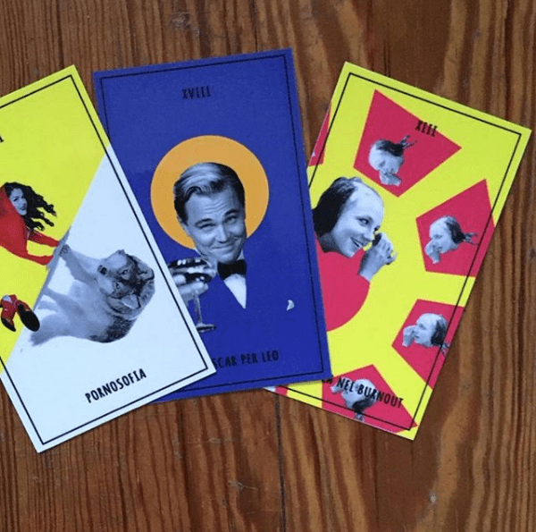 I Tarot sono un mazzo di carte composto dai 22 arcani maggiori dei tarocchi ma reinterpretati attraverso l’uso di icone della cultura pop italiana ed internazionale: da Beyoncé a Franca Leosini; da Tina Cipollari a Dawson’s Creek. Li abbiamo scritti noi (sembra strano ma va scritto anche un mazzo di tarocchi) e li ha illustrati con la tecnica del collage Elisa Botticella, una scrittrice e collagista di Torino. Ogni personaggio rappresenta al meglio (secondo noi) l’arcano che è stato chiamato ad interpretare. Le carte sono tutte belle e forse la nostra preferita è Tonio Cartonio, che rappresenta la Temperanza: un invito a resistere nonostante tutto e tutti. La peggiore è Mariah Carey: se esce Mariah non vuol dire niente di buono. Per quanto riguarda la vendita, ce l’hanno chiesto in molti ma purtroppo per rendere sostenibili i costi di produzione dovremmo trovare un finanziamento iniziale o un produttore. Quindi se c’è qualcuno interessato potete scriverci a uonnabi.redazione@gmail.com .