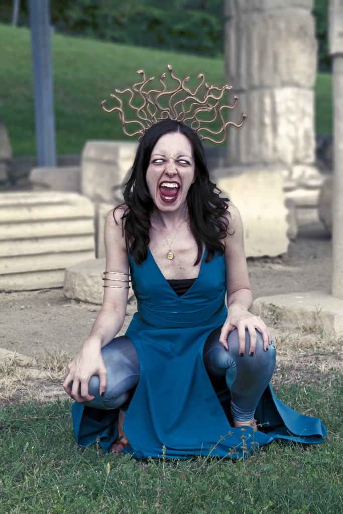 Ad Halloween mi travesto dalle paure degli altri in genere ma Medusa è anche una sorta di mia paura che vivo ogni volta che un uomo è affascinato da me, mi “consuma” e poi se ne va. Oppure peggio: mi fissa però mi evita come se fossi “troppo” per lui. Che poi la parola “troppo” mi ha dato sempre fastidio. Come se fossimo individui perfetti o dei computer che tutto conoscono. Non ci si incastra, è questa la realtà. Ho gli occhi azzurri e questa caratteristica è stata sin da piccola la mia maledizione. A chi ha occhi neri o marroni sembrerà esagerato, ma spesso anche le nostre caratteristiche di bellezza ci penalizzano davanti agli altri. Siamo diversi e la gente ci guarda strabigliata o con invidia qualche minuto in più del normale. Le persone ci mettono a disagio di riflesso come noi mettiamo a disagio loro pietrificandoli. Gli uomini guardano impietriti non solo i miei connotati ma anche e soprattutto se inizio a parlare e capiscono che non ho idee conformi alle donne con cui escono di solito. Si sentono inadeguati, spesso non comunicano questa inadeguatezza, hanno varie reazioni in base ai loro caratteri e il risultato finale è sempre quello: sparizione annunciata o taciuta. È come se rimanessero pietrificati da me. Ed è una cosa che odio, mi innervosisce, ma pare sia ineluttabile, difficile da cambiare.