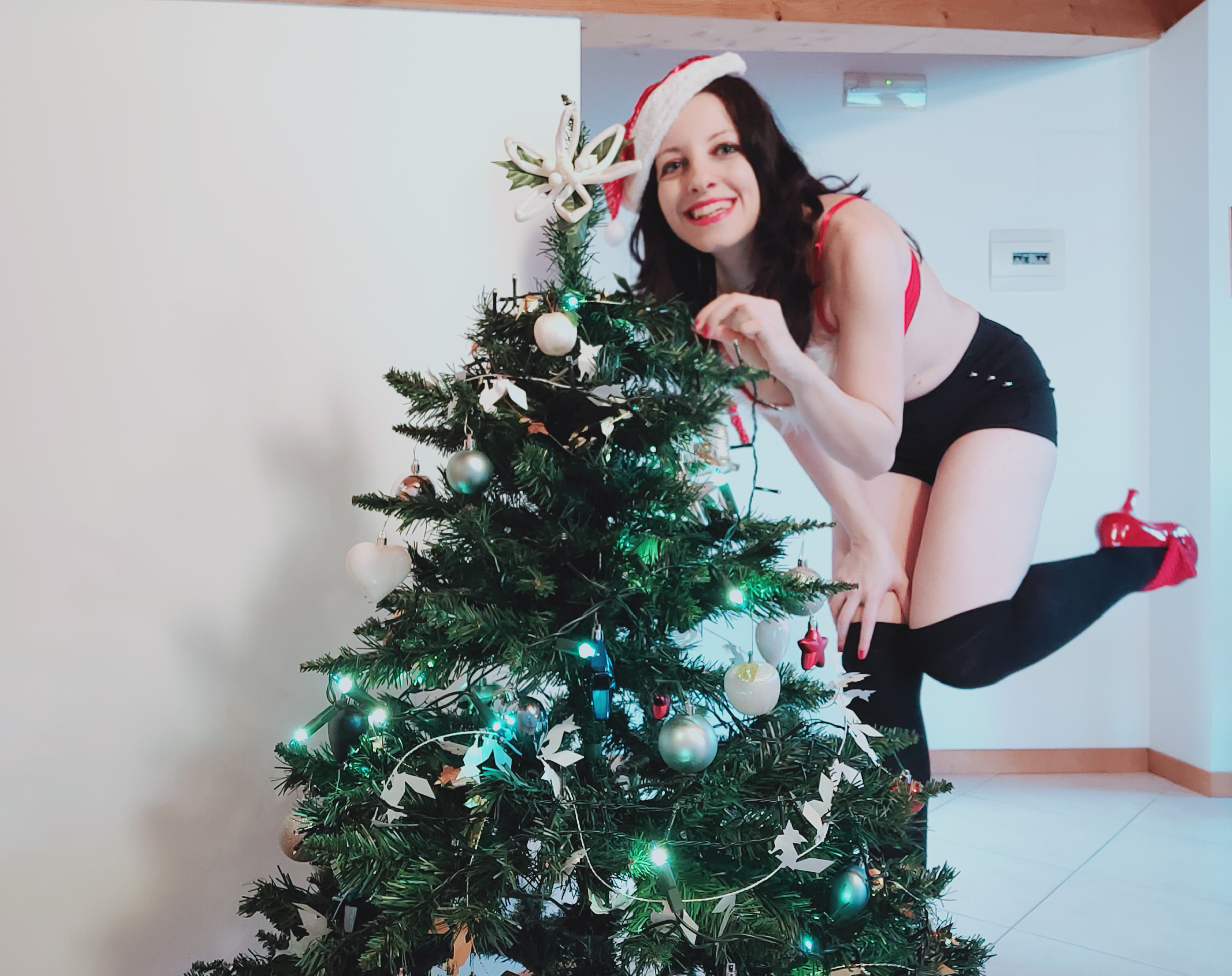 Non ho mai comprato un travestimento sexy natalizio perché mi sono sempre sembrati kitsch. Fatevi un giro su Amazon e vari sex shop, capirete. Quattro anni fa in un gruppo di danza del ventre le insegnanti decisero di ballare una coreografia di Natale sulla canzone di Mariah Carey “All I want for Christmas is you”. Acquistarono della biancheria intima sexy rossa con del pelo bianco finto su reggiseno e mutandine e su quest’ultime ci cucirono un pezzo di stoffa paillettato con uno spacco laterale per adattarlo alla nostra arte. Il look era completato da un cappuccetto rosso di paillettes bordato di finta pelliccia bianca con un pon pon sulla punta simile al cappello di Babbo Natale e dei manicotti rossi sulle braccia con bordi spelacchiati bianchi decorati da finti diamantini su due aperture a rombo agganciati con un elastico nero al dito medio. Non so se ci sentissimo ridicole per il costume o per apparire come una sorta di oggetti sessuali. Fatto sta che ci divertimmo molto ad essere quello che non eravamo. Perché il succo dei costumi sexy in fondo è questo: giocare ad essere quello che non sei. Quindi il Natale scorso, con la persona giusta (non tutti apprezzano, chiedete prima di vestirvi per evitare il deludente effetto Bridget Jones), ho rispolverato il costume ma con mutande diverse e cuissard rossi. È stato molto esilarante ma è inutile dire che a meno che non si tratti di un cappello ben inserito in testa, è impossibile mantenerlo in certi momenti. Se siete curiosi, una parte del travestimento è visibile nella foto copertina.