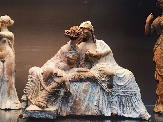 Plutarco ci informa che a Sparta “l’amore era ammesso al punto che le donne belle e buone amavano le fanciulle”. Nei thiasoi, comunità in cui le giovani si preparavano al ruolo di mogli, a volte si celebravano matrimoni omosessuali come dimostra un canto corale dei Parteni di Alcmane (Partenio del Louvre).