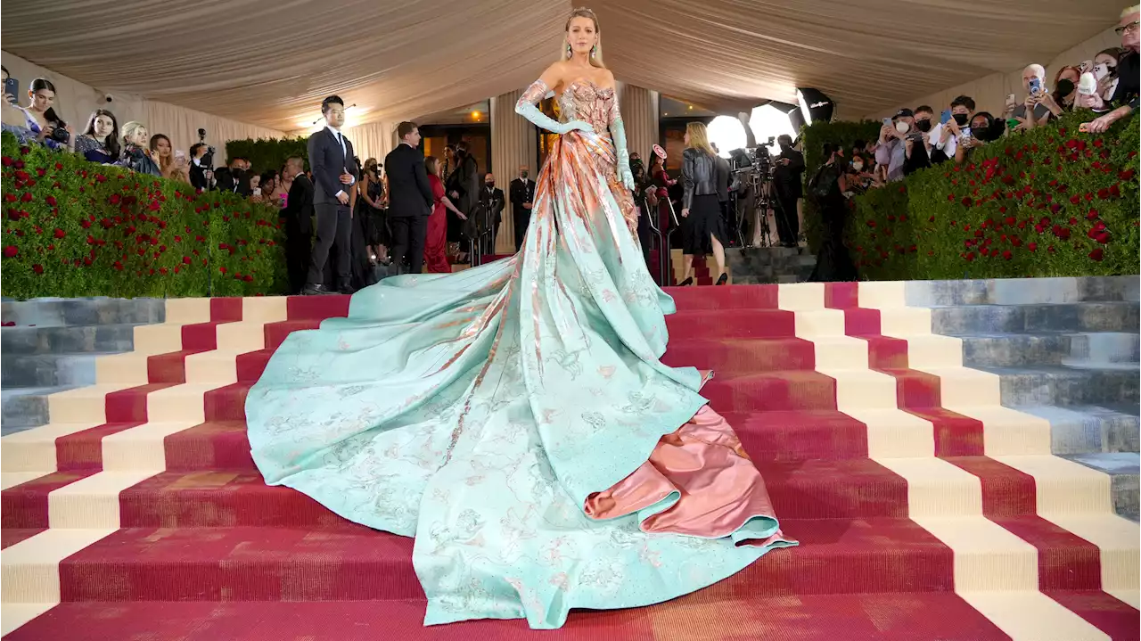 Un’altra maestra di look da Met Gala è Blake Lively, che quest’anno si è affidata a Donatella Versace per creare stupore. Il suo vestito lungo con strascico, all’apparenza solo in lustrini oro rosso e rame che richiamano le decorazioni Art Deco dell’Empire State Building , è stato rivelato sulle scale del Met. Gli addetti al tappeto rosso hanno sciolto il fiocco sopra allo strascico che ha scoperto una gonna lunga verde acquamarina, e i guanti di Blake rame sono stati tolti per dare spazio a quelli sotto dello stesso colore della gonna. Il riferimento tonale era alla Statua della Libertà. Altri piccoli dettagli su New York erano contenuti nella gonna come una costellazione presa dalla Grand Central Station. L’attrice si è affidata all’interpretazione iconica della prima città degli Stati Uniti, New York, ed è riuscita a creare un colpo di scena sostituendo degnamente Lady Gaga che quest’anno non era sul red carpet. Qui potete rivedere il big reveal.