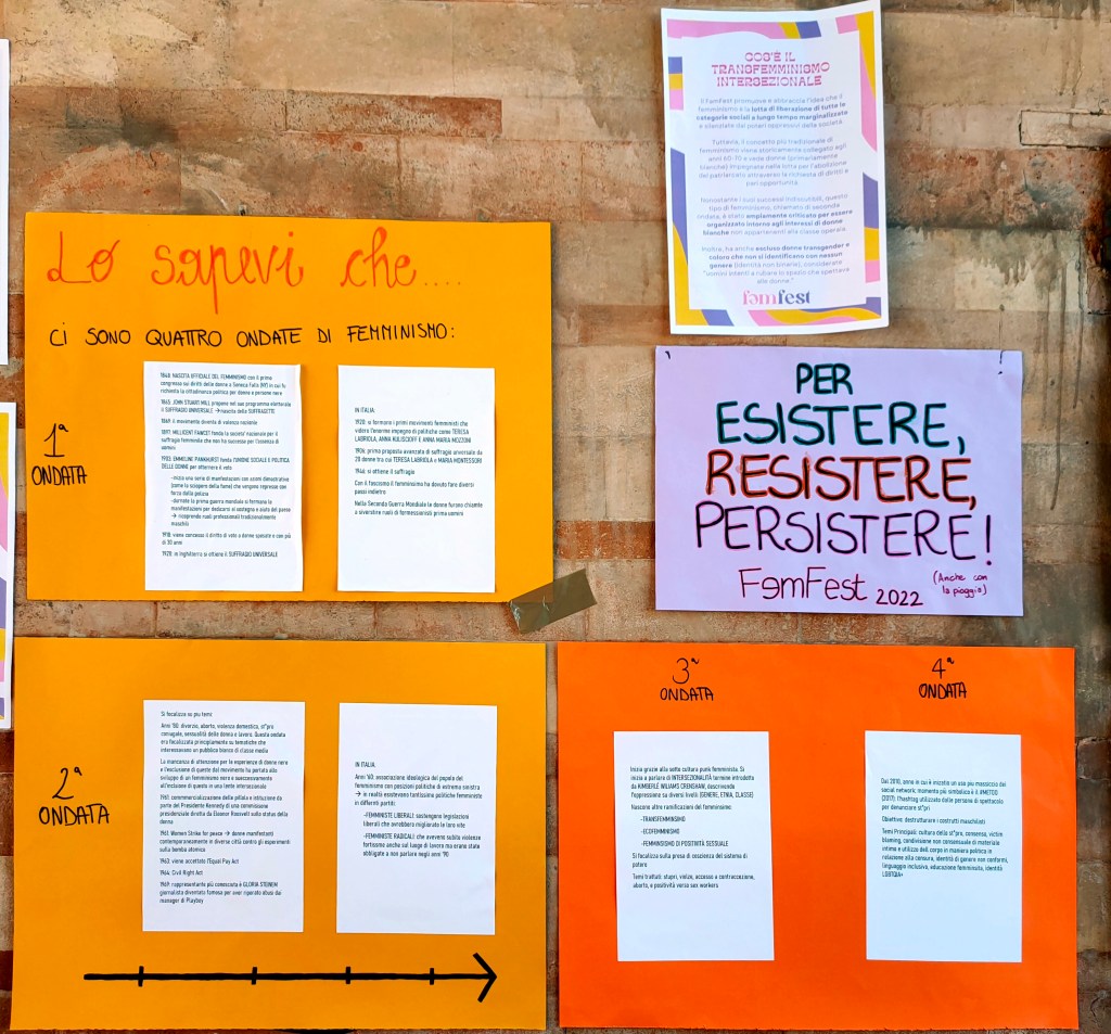 Fəmfest è il primo festival transfemminista intersezionale marchigiano Fəmfest, organizzato da Common Bubble, tenutosi lo scorso weekend. Molti gli argomenti affrontati in workshop, laboratori, dibattiti e molti gli ospiti presenti: razzismo sistemico con Oiza Q. Obasuyi e Marianna The Influenza; violenza di genere con Collettivo Clara, Laura Gaspari di On the Road e Valentina Mira con il suo libro X; inclusività nel linguaggio italiano con Liberə Tuttə; identità di genere non conformi con focus sul lavoro nel laboratorio con Diego Angelo Cricelli, Milo Serraglia e Marte Manca; sensibilizzazione al genere per i bambini con Ylenia e Laura Rosina; letture co-educative con Sandra Arellano. Dafne Ciccola e Elisa Manici non erano presenti causa febbre. I visitatori hanno potuto ammirare le foto di Alexa Sganzerla, Claudia Verroca, Enrica Gjuzi e Silvia Mongardini che avevano rispettivamente come oggetto il problema di accettazione del corpo, storie di donne, corpo come mezzo erotico e sessuale e violenza di genere. Le serate sono state accompagnate dalla musica di Viola, Lorenzo Cattel, Alyz_ki, Dj IndekoRòsa.