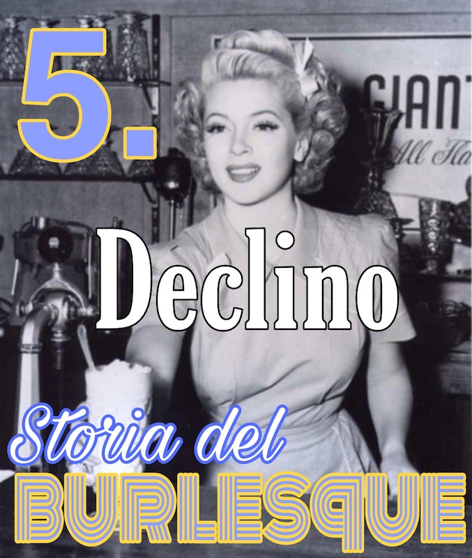 Il suo declino si verificò a metà anni Sessanta per il cambiamento dei costumi e delle rappresentazioni della sessualità. La libido era libera di esprimersi ormai con la diffusione del cinema pornografico, dei peep show e della lap dance, la danza intorno ad un palo di ferro installato sulla passerella. I teatri di burlesque chiusero e alcune artiste si adattarono alla politica dei club, nei quali lo scopo era spogliarsi velocemente senza tanti complimenti. Tutto si trasformò in merce. Non esisteva più fantasia.