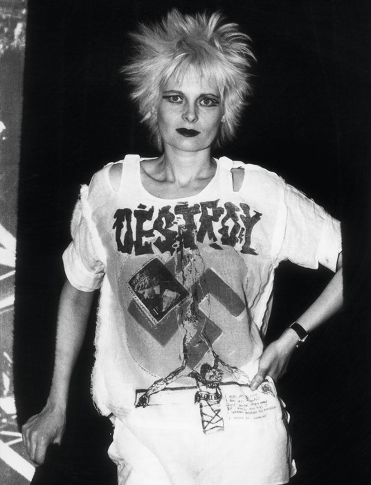 Ogni volta che cambiavano nome al negozio, mutavano anche i vestiti: Too Fast to Live to Young to Die, SEX, Seditionaries, Worlds End. Fu di Malcolm l’idea di sfidare la classe dirigente attraverso il sesso. “Perché l’Inghilterra è la casa del maniaco sessuale”, disse Malcolm a Vivienne. Lo slogan del negozio era: “Abbigliamento di gomma per l’ufficio”. Per i vestiti punk Vivienne si ispirò ai teddy boys degli anni Cinquanta e ai motociclisti, nonché alla sottocultura BDSM. Una delle t-shirt più famose che il duo creò fu Destroy per i Sex Pistols con parole dalla loro canzone Anarchy in the UK (I’m an anti-christ…). La svastica, la Regina d’Inghilterra e il crocifisso rovesciato, simboli passati di un potere distorto, rappresentavano “il fatto che non accettavamo i valori della generazione più vecchia“. Westwood e McLaren inventarono il gruppo punk più famoso della storia dal nulla. Presero un loro commesso del sabato, Glen Matlock, un paio di loro clienti e Johnny Rotten, che era già un fenomeno di eccentricità. Il nome fu dato da McLaren per promuovere in parte il negozio SEX (1974).