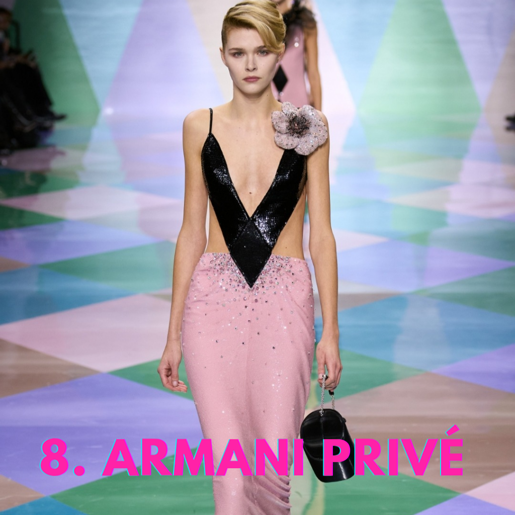 8. Armani Privé ha preso spunto da Arlecchino con un’atmosfera tra età del Jazz (1918-28) e anni Ottanta.
