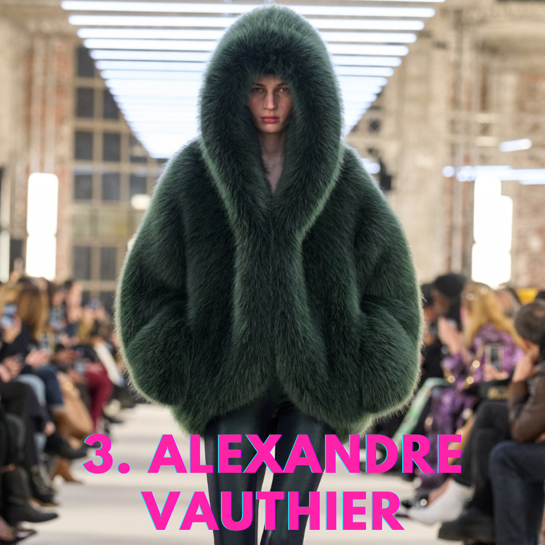 3. Alexandre Vauthier va un po’ in controtendenza perché immagina delle pellicce (finte) per l’estate. Ha constatato che moltə suə clientə preferiscono i luoghi freddi nella bella stagione, probabilmente anche per il riscaldamento climatico. Qualche outfit si ispira anche alla mitica Grace Jones.