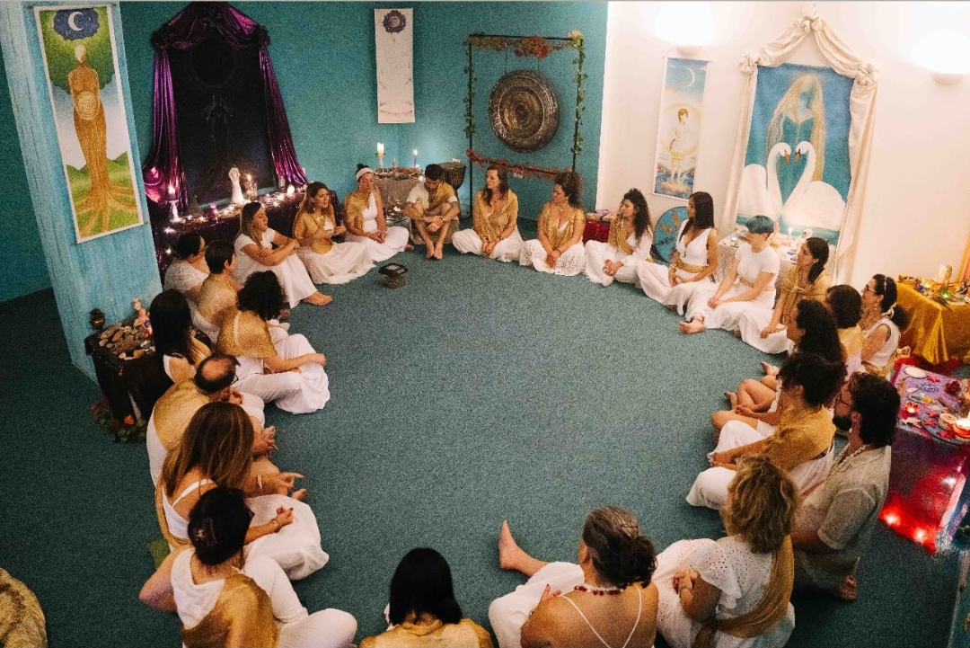 Insieme a mio marito abbiamo iniziato a costruire la comunità e a insegnare e trasmettere la nostra visione dal 2014, nel marzo del 2015 abbiamo aperto il Tempio come spazio di divulgazione culturale online e come spazio sacro pop-up. Nel 2016 abbiamo finalmente aperto il tempio come luogo fisico vero e proprio. Fin da subito c’è stato l’interesse delle università a collaborare con noi e diversi professori e professoresse dell’Università Sapienza di Roma hanno sempre portato i loro gruppi in visita al Tempio. Negli anni mi hanno invitato spesso a tenere conferenze e lezioni, il mio lavoro di ricerca è arrivato fino alla Oxford University e ormai lo studio del Tempio è parte del programma di studi di Storia delle religioni e antropologia. Abbiamo sempre fatto in modo che il tempio venisse percepito come un luogo accogliente e inclusivo, non siamo una setta, il locale è su strada, aperto e visible a chiunque e quindi anche le persone del quartiere ogni tanto fanno capolino. Adesso che sono a Bali, un gruppo di studenti e studentesse formato da me continua fisicamente le attività del Tempio a Roma e Diego e io partecipiamo da lontano alla parte organizzativa. Offriamo cerimonie collettive in cui tuttə sono invitatə (la prossima sarà la Celebrazione di Halloween, Samhain, che nella tradizione Afroditica chiamiamo “Tempo dell’Alba Oscura”, ndr) e tante altre attività come la lettura interpretativa dei tarocchi, sessioni di meditazione per integrare e diminuire lo stress, sessioni di guarigione.