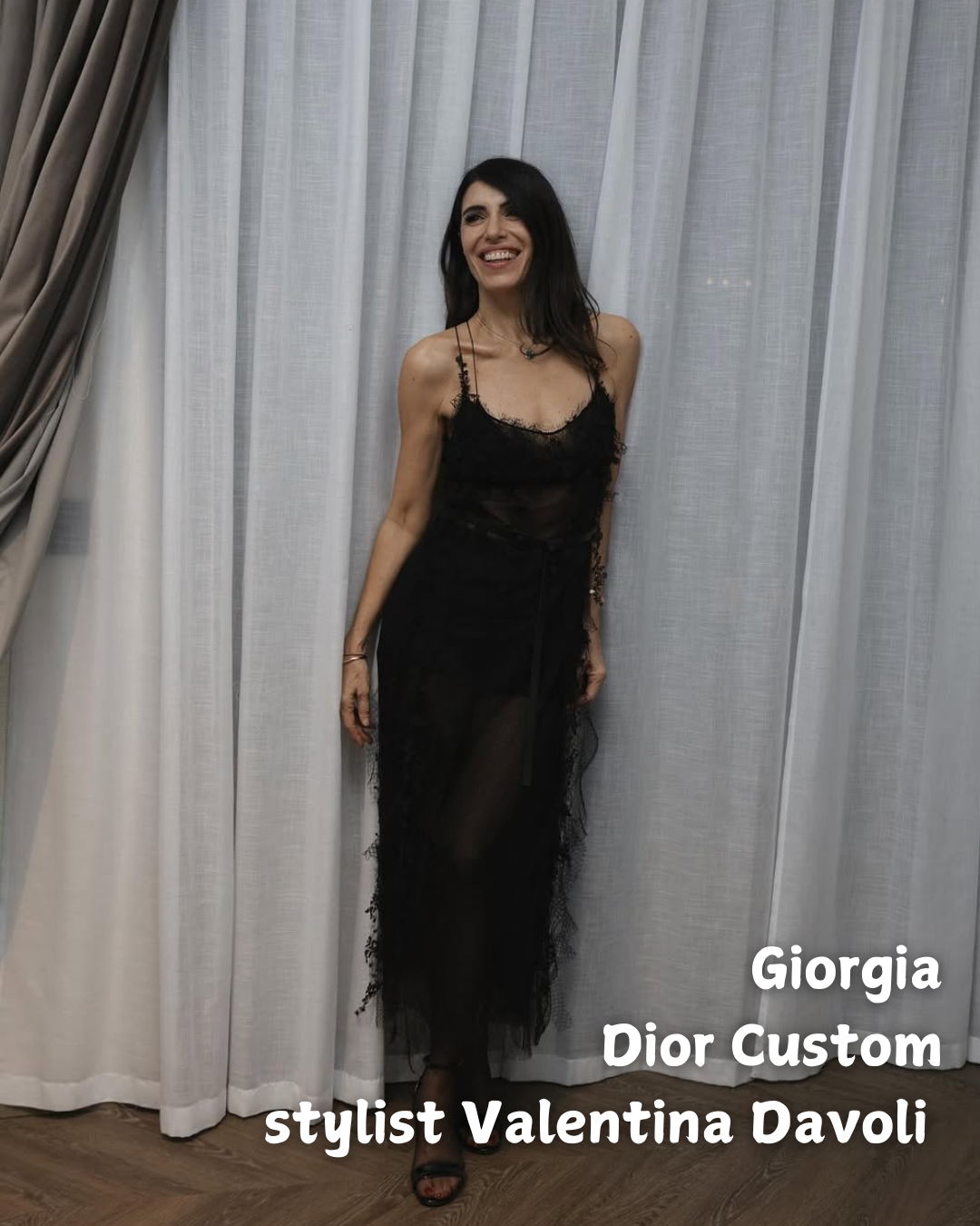 3. Giorgia in Dior su misura ispirato all’ultima sfilata haute couture P/E 2025, stylist Valentina Davoli. La cantante ha creato i suoi look con Maria Grazia Chiuri ispirandosi a figure femminili che ammira.