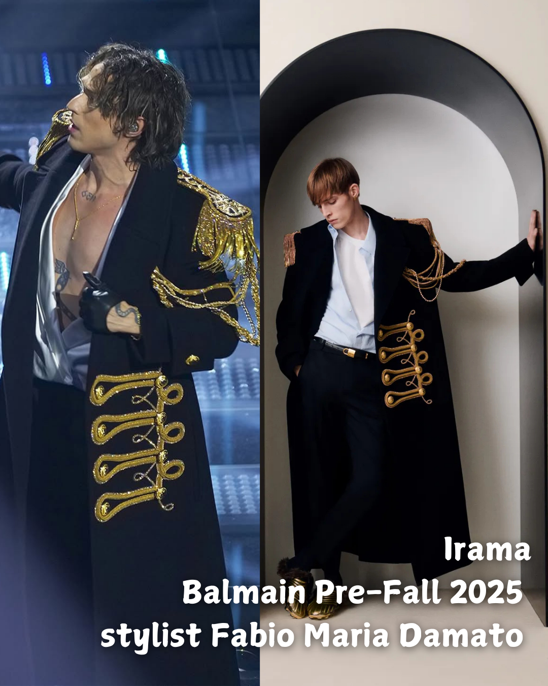 1. Achille Lauro in Dolce&Gabbana su misura, stylist Nicolò “Nick” Cerioni. Completo ispirato all’ultima sfilata menswear A/I 2025. Sembrava un Milord (Tsukedo Kamen) di Sailor Moon ieri sera, regale ed elegante, pronto a lanciare la sua rosa rossa.