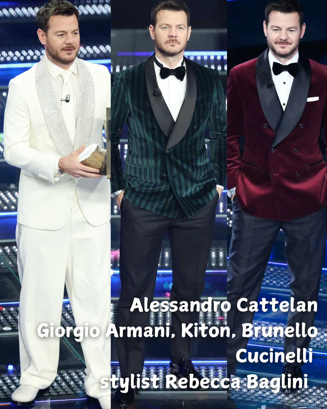 Serata molto di corsa, al solito, con conduttori del calibro di Alessia Marcuzzi e Alessandro Cattelan che quasi non riuscivano a interagire con un Carlo Conti, a tratti odioso nella sua fretta cronica. Cattelan ha scelto di essere una copia del presentatore toscano adottando la giacca doppio petto nel completo ma con revers a fascia morbida di satin, piuttosto che a lancia come quelli di Conti (tranne alcune eccezioni), il tutto targato Giorgio Armani, Kiton e Brunello Cucinelli. La storica stylist di Alessia Marcuzzi, Claudia Scutti, ha scelto abiti che hanno messo in risalto il fisico statuario della conduttrice con il primo solo apparentemente casto (lungo con collo alto nero) ma con una ampia scollatura sulla schiena, firmato Dolce&Gabbana. Molta delusione tra il pubblico per la non vittoria di Giorgia e per il settimo posto di Achille Lauro. Lucio Corsi, arrivato secondo, è sicuramente il vincitore morale di questo festival per originalità nella musica e nel vestire. Al vincitore, Olly, auguro un buon inizio di carriera col botto!