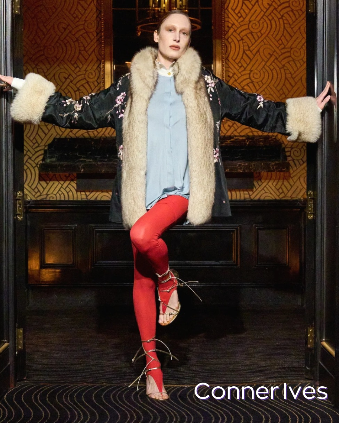 4. Atmosfera disco nostalgia da Conner Ives con brani di Diana Ross e una rivisitazione jazz di “Super Bass” di Nicki Minaj. Una collezione ispirata al mondo delle showgirl anni Ottanta e Novanta in cui “si poteva avere un vestito favoloso firmato da un designer senza che ci fossero quattro o cinque cifre, che ora si è perduta nel Ventunesimo secolo”. Spiccano in particolare i leggings dai colori brillanti (che sembrano più fuseaux) e sandali con cinque stringhe alla schiava. Lo stilista americano è uscito in passerella con la maglietta “Protect the dolls” per sostenere la comunità transgender Usa, che attraversa un periodo terribile a causa dell’amministrazione Trump.
