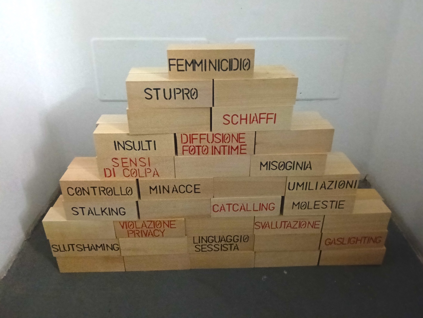 Il museo ospita diverse installazioni artistiche attuali che mostrano la violenza maschile contro le donne: dal gender gap ai ruoli precostituiti, dal mansplaining ai femminicidi, dalle molestie sulla metropolitana alla rappresentazione sminuente della donna.